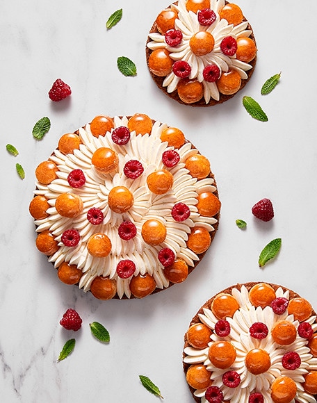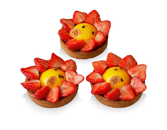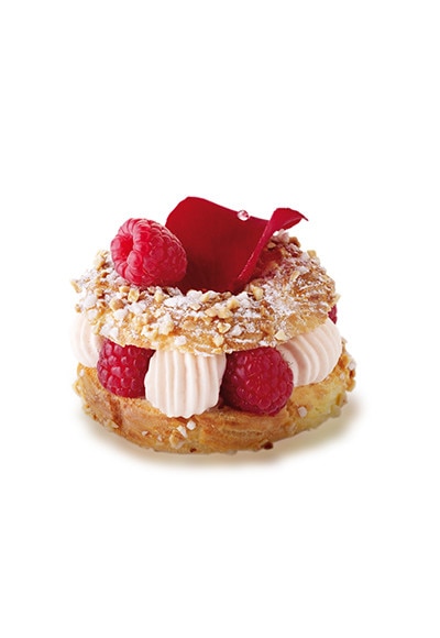 タルト セレスト、パリブレスト イスパハン、フレジエなど2週間交替で登場する限定パティスリー(各7.20ユーロ)。なお、売り場では月〜木がひとり用サイズの販売、週末はホールサイズを販売。ギャラリー・ラファイエットが開くのは8時30分だが、売り場にお菓子が並ぶのは10時(日曜は11時)から。