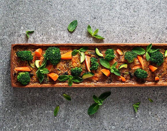 驚くほど長いキッシュ。ひとり分ずつカットする。サンドイッチも同様だ。