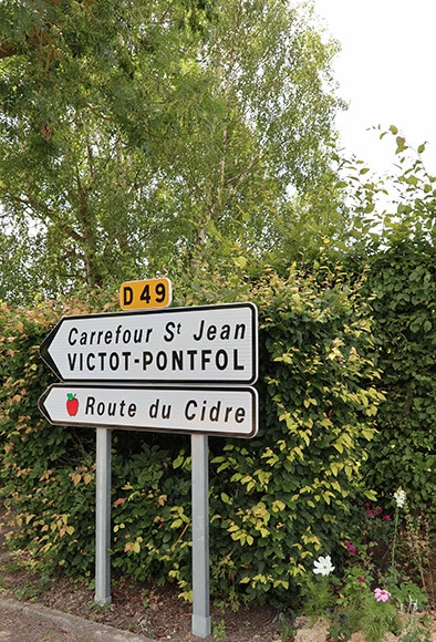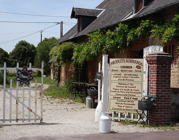 ノルマンディーはりんごの産地。りんごから生まれるお酒の産地を巡るシードル街道なんて看板も。