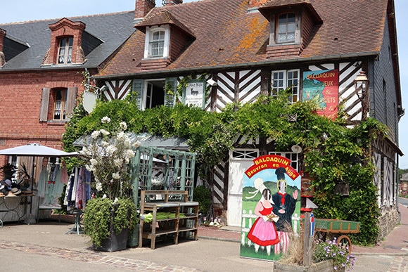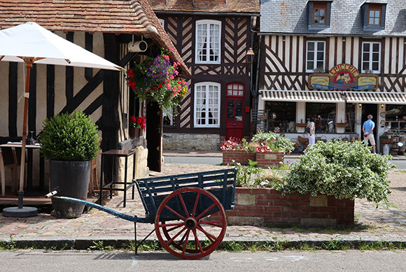ノルマンディー・スタイルの建物が並ぶチャーミングな小さな村。