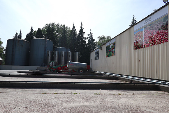 見学コースのあるシャトー・デュ・ブルイユ。22,000本のりんごの樹が植えられた42ヘクタールの畑から、200~300トンのりんごを収穫し、カルヴァドスのためにまずはシードル作りから始める。右の建物内でりんごジュースを作り、その左のタンク内で最低21日かけて発酵させてシードルを用意する。