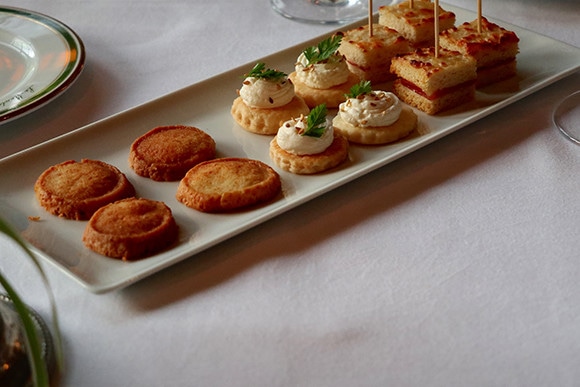 パルメザンのガレットやミニ・クロック・ムッシュなどのアミューズ・ブーシュの美味しさに、次に登場する料理に期待が膨らむ。