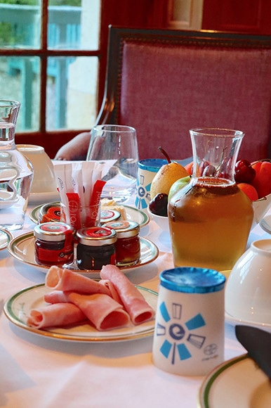 ハム、ヨーグルト、チーズ、りんごジュース……朝食も厳選された地元の恵みがあれこれ。