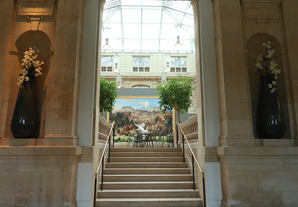 美術館内、ガラス屋根の下「彫刻の間」が素敵なティールームとなっている。