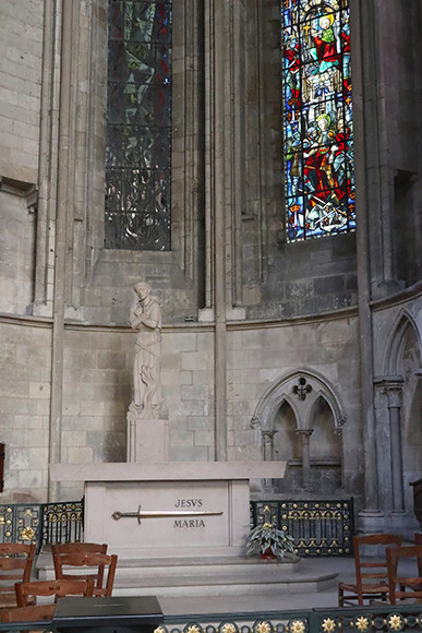 大聖堂内、ジャンヌ・ダルクの一生を描いたステンドグラス前で大勢が足を止める。