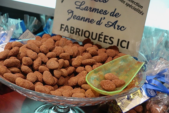 ジャンヌ・ダルクはルーアンのセレブリティ。火刑された彼女の涙にアーモンドをみなしたジャンヌ・ダルクの涙(larmes de Jeanne d’Arc)というチョコレート菓子を大時計通りのチョコレート屋Auzou(オズー)が作っている。手頃なお土産になりそう。