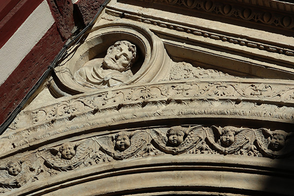 ファサードのディテールを眺めることを忘れないよう。アンリ4世のシンボルであるサラマンダーも彫られている。