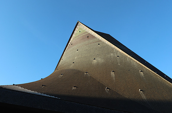 遠くから見ると真っ黒に見える教会の屋根だが、上方はグリーンだ。