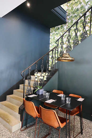 カジュアル・シックな店内。1階にはカウンター席もあるので、ひとり旅ならここで気楽に食事を。