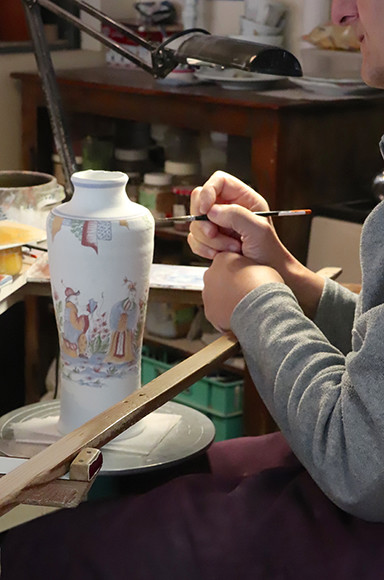 職人の絵付け作業を目にする機会もある。