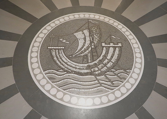 エントランスの床にタイルで描かれたリュテシアの紋章。