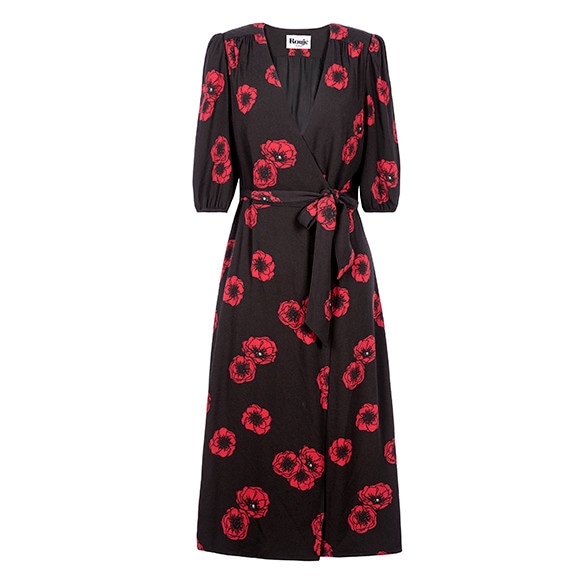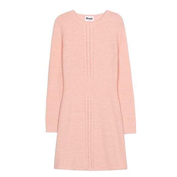 甘いピンクのニットドレスはMireille。ラップスカートと五分袖がRougeらしいワンピースはRosalie。