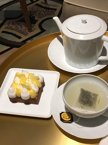 ティールームではアラカルトで飲み物だけでもオーダーできる(エスプレッソ5ユーロ〜)。ヤン・クーヴルールのパティスリーは4種(エクレア、レモンタルト、サバラン&リ・オ・レ、グルテンフリーのプラリネ・メレンゲ/12~22ユーロ)が揃えられている。