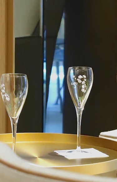 ペリエ・ジュエのシャンパーニュ。ベル・エポックはあいにくとグラスサービスはなく、ボトル(240ユーロ)のみ。