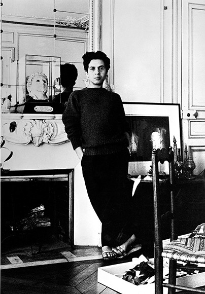 若き日のアズディン・アライア。パリ7区のベルシャス通りにて。このアトリエに、1979年、彼のクチュール顧客のセシール・ド・ロスチャイルドが友人のグレタ・ガルボを連れてきた。その時に彼女が着ていたのは、エイドリアンによるスーツだった。