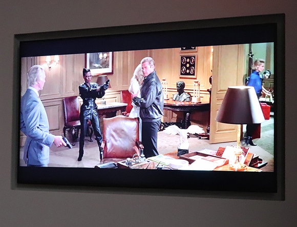 なお会場の奥のふたつの小部屋では、エイドリアンが衣装デザインを担当したジョージ・キューカー監督の『ザ・ウィメン』(1939年)、アズディン・アライアがグレイス・ジョーンズの衣装を担当した『007 美しき獲物たち』(1985年)の映像を楽しめる。