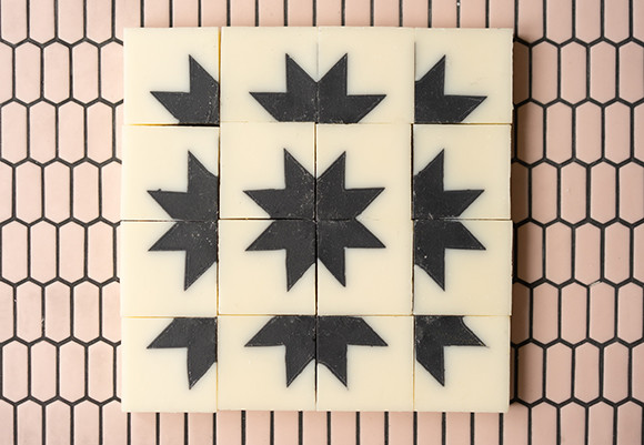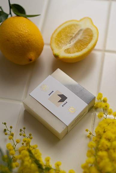 チャコールが星を描く角形のシンプルなデザインの石鹸には、ビオのココナッツオイルとセサミオイルが使われている。メイク・マイ・レモネードのブティック、デパートのボン・マルシェ、そしてCIMENTのサイトだけの超限定販売品だ。