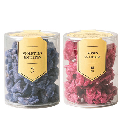 バラ「Roses Cristallisées 」45g、スミレ「Violettes Cristallisées」70g 各10ユーロ