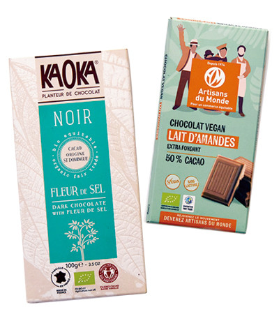 「Tablette Noir Sésame」「Tablette Lait Pécan-Macadamia」各8.50ユーロ