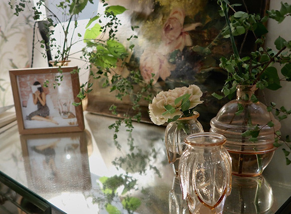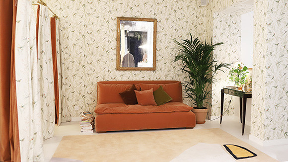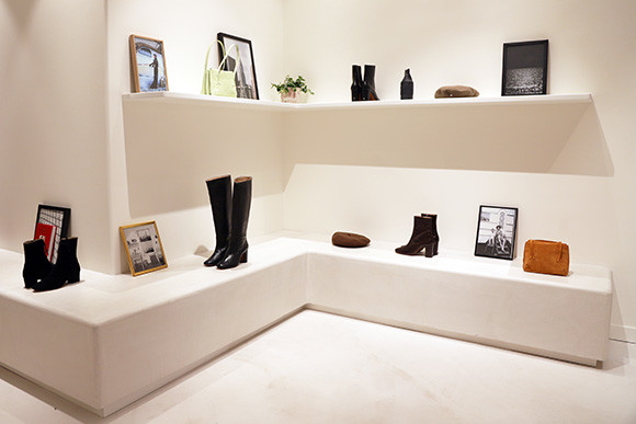 ブティックの内装を任されたのはマリー=フランス・コーエンが率いるDémodé(デモデ)である。ルージュの服を特徴づけるヴィンテージ感と気取りのないシックな雰囲気がインテリアにもうまく生かされたブティック。店の奥のゆったりとした試着室は、鳥のモチーフの優しい色合いの壁紙とお揃いのカーテンが魅力的だ。“神の偉大なる想像物”と形容したくなるジャンヌ・ダマスのボディは、ルージュを着たからといっても残念ながら得られない……と思うだろう。でも、ルージュを試着しているごく普通のパリジェンヌたちを見ていると、誰しもがジャンヌの持つ雰囲気を自然と醸し出しているのがおもしろい。ルージュはまさにジャンヌのワードローブなのだ。