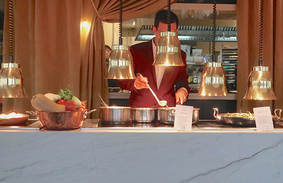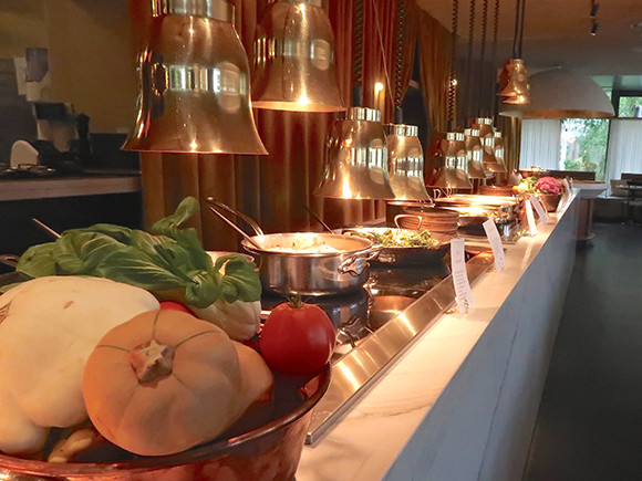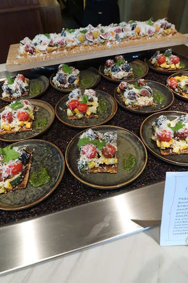 メインはセルフサービスではない。選んだ料理をお皿にサービスしてもらう。ランチは前菜+メイン またはメイン+ デザートで23ユーロ、前菜+メイン+デザートで29ユーロ。ディナーはビュッフェで39ユーロ(飲み物別)。