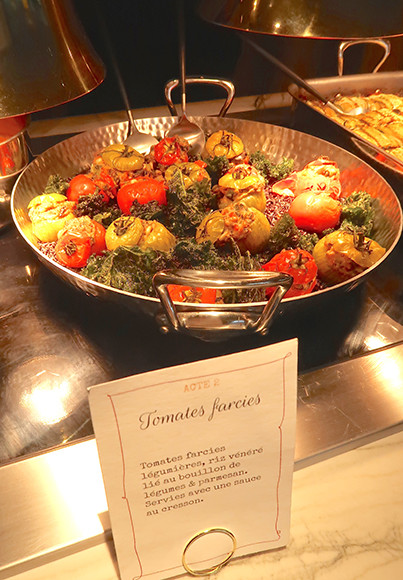 メインはトマト・ファルシー(写真)、ラタトゥイユ、グラタンといった料理にまじって、野菜の天ぷらも。