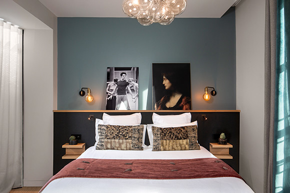 オペラ座のエトワールダンサー、ジェルマン・ルーヴェの写真を飾った客室。photo : Nicolas Anetson