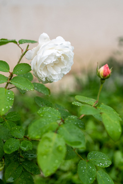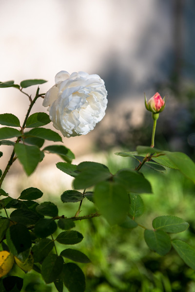 庭造りですが、ほかは玄関横に白バラを2種類植えました。デヴィッド・オースティンのバラで「クレア・オースティン」と「ウィンチェスター・キャシドラル」(写真)。いわゆる「イングリッシュローズ」というのは、オールドローズ(香りと見た目の華やかさ)とモダンローズ(繰り返し咲きで丈夫)をかけ合わせたいいとこ取りのもので、イギリスのバラ育種家デヴィッド・オースティン(1926〜2018年)が作り出したバラの総称なんですね。いま頃知りました。次回はフランスに1カ所だけあるデヴィッド・オースティンのバラ園を訪ねた際の話と、今後の庭について。どうぞお楽しみに。しかし、、出べそか、、←まだ言ってる。