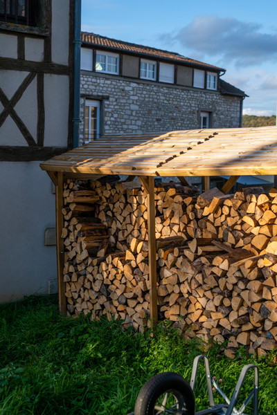 あと、夏に薪小屋を作りました(キットを買っただけ)。本来はきっちり地面の水平をとって作らなくちゃいけないんですが、そのあたりを適当に製作したため、薪を並べたところでさっそく左に傾きはじめました。中央部の釘が外れて崩壊しかけたため、真ん中の継ぎ目部分をこれでもかと補強しています。5年くらいは保ってくれよ、、。皆さん、小屋を建てる時は水平にくれぐれも気を付けてください←教科書を読まないタイプ。