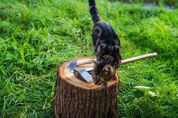 ちなみに、この斧はスウェーデンのグレンスフォシュ・ブルークという老舗のものでですね、、、あ、猫、、