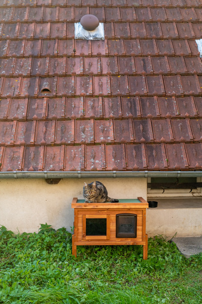 ともあれ、いまは去勢前のせいか家猫ノアが牙を剥いてサビの侵入を嫌がるので、後発猫のサビさんは、庭暮らしをしてもらっています。朝晩は寒かろうと小屋も買ってあげました。