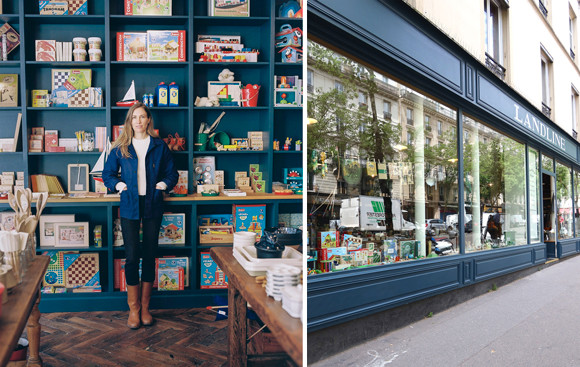 彼女がこの店を介して提案するのは、日常生活のためのサヴォワールフェール。フランスおよびヨーロッパ諸国から集めた、毎日の暮らしに役立つ品が広い空間におしゃれにディスプレイされている。店名のランドラインとは、昔の有線電話のこと。インターネットが発達する以前のスローに暮らしていた時代を象徴する言葉だ。環境の健康を留意する、彼女のエコ・レスポンシブルな考え方もこの店名に含まれている。