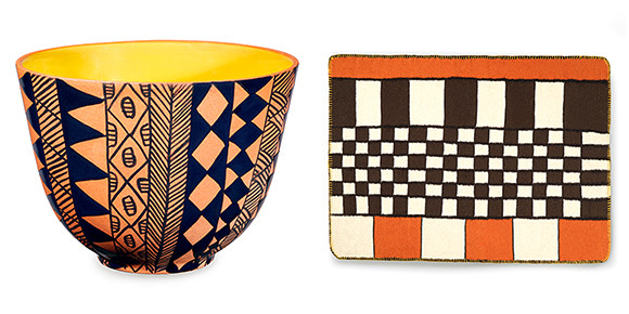 ユネスコも支援するチュニジアのアルチザナルから。左のサラダボウル 25ユーロ、右のマット(80x145cm) 120ユーロ