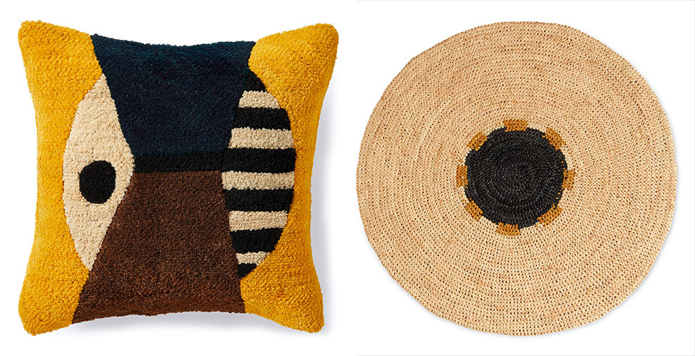 左: コンゴのクリエイターKilubukilaによるラフィアのクッション 60ユーロ 右: マダガスカルで手編みされるDomoinaのランチョンマット(直径37cm) 14ユーロ