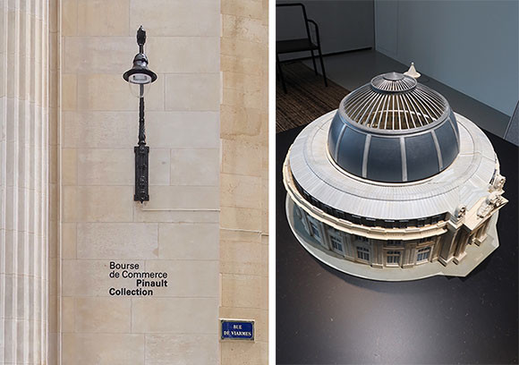 左: アドレスはヴィアルム通りだがルーヴル通りに建物前広場は面し、ルーヴル美術館にも近い。右: 1階に展示されている模型。photos:Mariko Omura