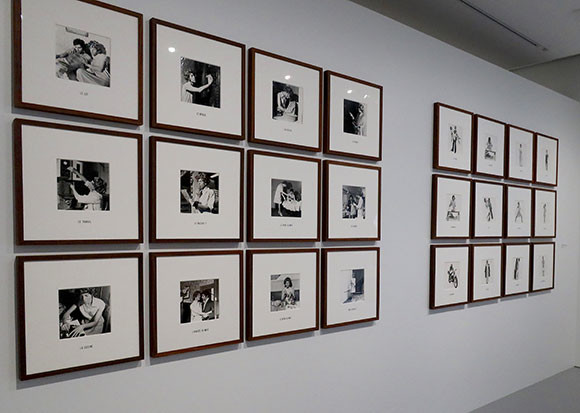 2階(プルミエ・エタージュ)は写真のスペース。ここで展示されているすべての作品が、ピノー・コレクションでは初公開だそうだ。ミシェル・ジュルニアック、ルイーズ・ローラー、シェリー・レヴィーン、リチャード・プリンス、シンディ・シャーマン、マーサ・ウィルソンの6名の写真家の仕事に触れられる。中でも興味を集めているのは、ギャラリーのエントランスの壁一面を占めるビジュアル・アーティスト、ミシェル・ジュルニアック(1935-95)の24点の写真のようだ。「普通の女性の24時間」(1974年)とタイトルされ、その中でアーティスト自身が女性に扮して24変化し、1970年代の女性の暮らしを物語る作品は、シンディ・シャーマン、森村泰三の仕事を思わせる。