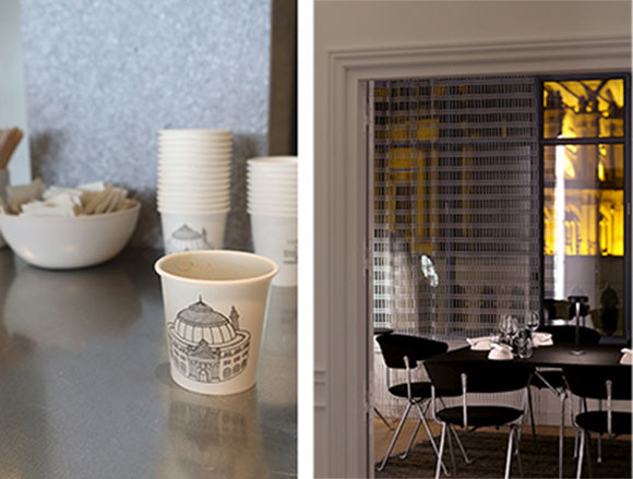 左: ヴェルレの無料カフェサービス。 右: セバスチャン&ミッシェル・ブラによるレストラン、アール・オ・グレン。photos:(左)Mariko Omura、(右)Laurent Dupont