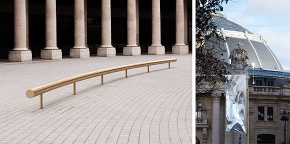 ベルトラン・ラヴィエの作品である24のウィンドウが、コンクリートシリンダーに沿って通路に並べられている。ブルーレック兄弟による通路のベンチは、建物をパリ市に返還することからモザイクの床に固定されていない。photos:Mariko Omura