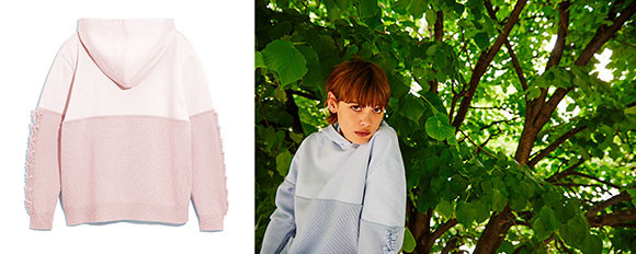 上半分がジャージー、下半分がカシミアのフード付きパーカ。
