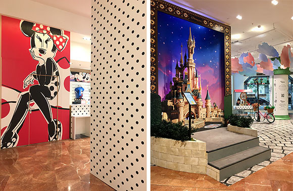 1階、ディズニーランドの特設ブティックではミニーがお出迎え。エントランスホールにはインスタコーナーも。photos:Mariko Omura