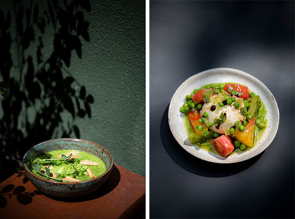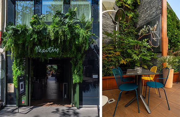 たとえばレピュブリック広場から遠くないバー・レストランの「Martin(マルタン)」。緑あふれる中庭テラスは、朝から晩まであらゆるニーズを満たしてくれる、知る人ぞ知る貴重な場所である。シェフはロンドンの星付きレストランであるピエール・ガニェールの「スケッチ」で働いていたエマニュエル・ドゥ・オリヴィエラだ。パリ近郊の季節の素材を用いて、毎日フレッシュな料理で彼は常連たちや一見さんを満足させている。ランチとディナーの間はティータイム、それからアペリティフ、さらにディナーの後も……と、食事目的ではない人々もこのマルタンでリラックスした時間を過ごしに集まってくる。