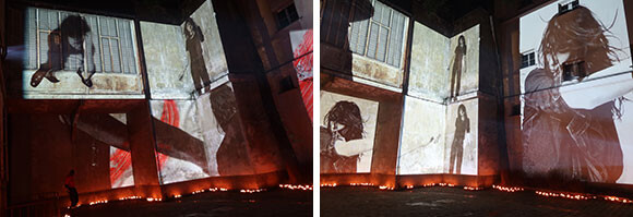 左: シャルロット・ゲンズブールとザラのマルタ・オルテガ。 右: パーティ会場の中庭。
