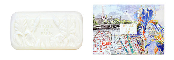 Belle de Parisの石鹸。グラースのフラゴナール内で施される彫りが白い彫刻のよう。9ユーロ