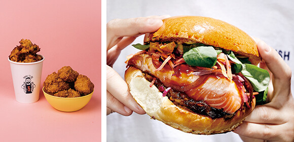 ペール&フィッシュ。サーモンのスコティッシュ・バーガーでしっかりお腹を満たすもよし、タラのアクラでビールを一杯!もあり。photo:(左)©️ABSOLT