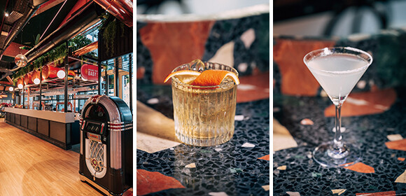 昼と夜では雰囲気が変わるイコニック。イベントも開催される。好きな場所に座って、あるいは立って、好きなものが食べられるフードコートの魅力は1日中続く。photos:(左)©️Albindurand (右)Mariko OMURA