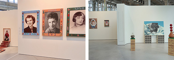 写真のラボのPicto財団とのコラボレーション。若い女性写真家Lucie Khhoutianが撮影した女性3名の肖像画に、彼女が希望したのは彼女の出身国であるアルメニアのフォークロアなモチーフの刺繍を施した額縁。アトリエ・モンテックスが制作した。photos:Mariko Omura