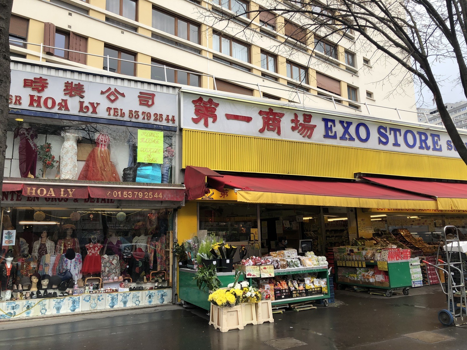 オランピアードに隣接し、イヴリー通り、ショワジー通り、マセナ通りに囲まれた三角地帯は、アジアの食材店と飲食店、アジア人向けの旅行代理店や不動産店が立ち並ぶ。週末ともなるとスーパーの大駐車場に買い出しの車が列をなし、エキゾティックな食材を求めるパリジャンもこぞって訪れるエリア。最近では世代交代も進んで、アルファベットだけの看板が増えつつある。