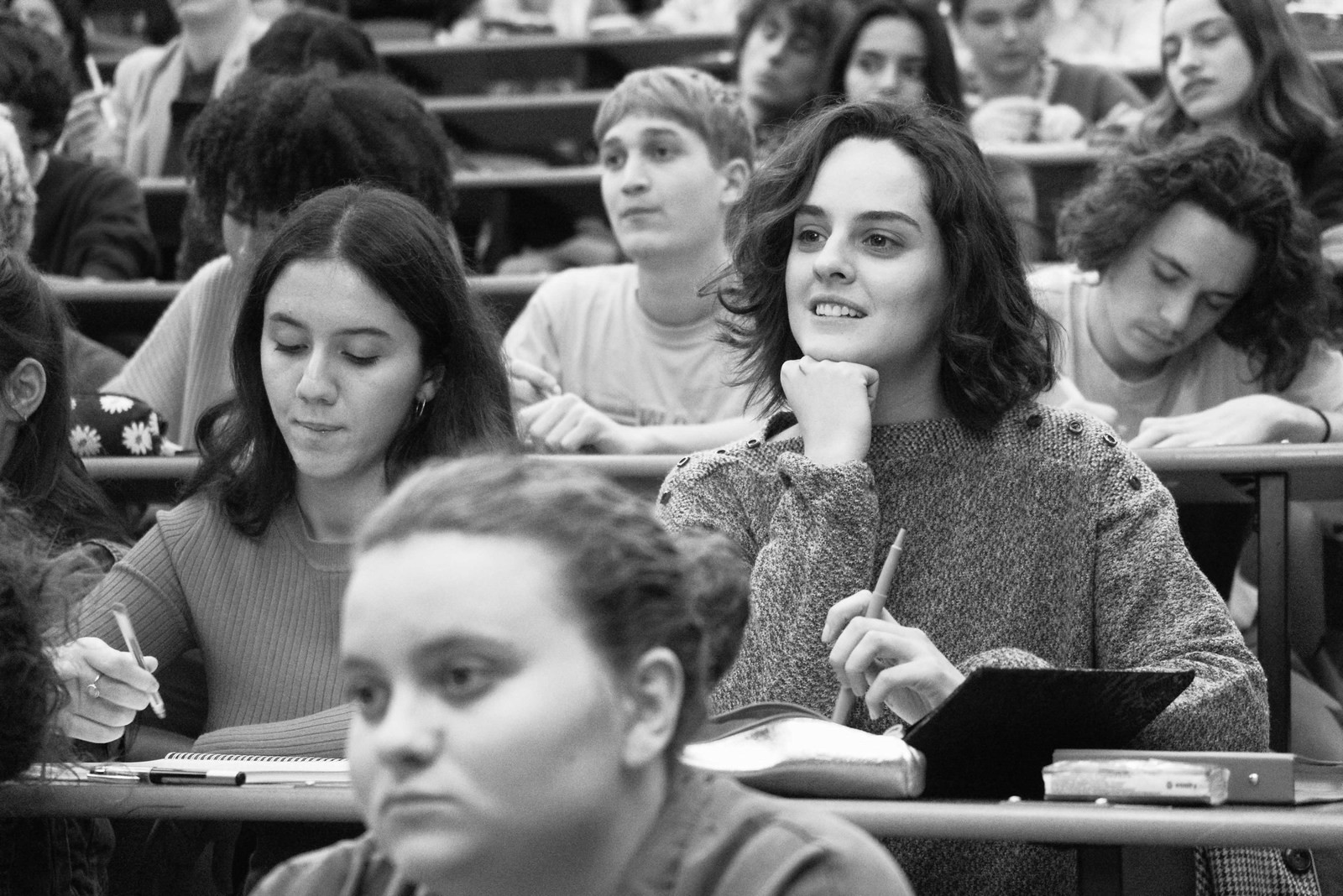 映画の中で法律を学ぶノラが階段教室にやって来るのは、パリ第1大学パンテオン・ソルボンヌの通称「トルビアック」センター。ソルボンヌと聞くとパリ5区の伝統的な学生街カルティエ・ラタンをイメージするけれど、13区の高層ビル内にあるところがミソ。エミリーのアパルトマンがあるオランピアードと、トルビアック通りを挟んで向かい側に位置する。9階、16階、22階建ての3棟にキューブを組み合わせたような建築は1973年に完成し、人文、経済、経営、法律などの学生6000人ほどが学ぶ。