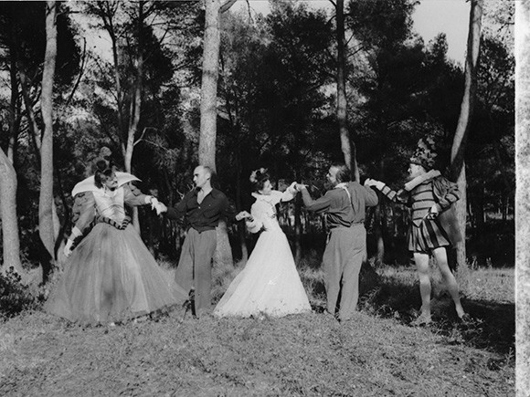 いまから80年前の1942年7月27日、たった一度だけ『真夏の夜の夢』の公演が行われた。第二次世界大戦の最中である。それは占領下のパリと異なりフリーゾーンだった南仏モントルボンにあるリリー・パストレ伯爵夫人が有する敷地内でのこと。彼女はエクス・アン・プロヴァンスで夏に開催される有名な音楽祭の生みの親として名を残すメセナだ。その時の公演や舞台裏を撮影した貴重なオリジナルプリントが、6区で20世紀の家具とオブジェを扱うギャラリー「アレクサンドル・ビアッジ」で展示されている。撮影したのは、室内装飾家になる以前は写真家だったというヴィクトール・グランピエールだ。クリスチャン・ディオールの友人で、ディオールのクチュールメゾンに18世紀のエレガンス漂う内装を手がけたのが彼である。