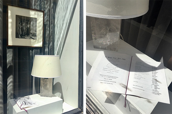『真夏の夜の夢』のプログラムをウィンドウに展示している、6区のギャラリー「アレクサンドル・ビアッジ」。彼の家具やオブジェのセレクションはパリの趣味人に愛されている。photos:Mariko Omura